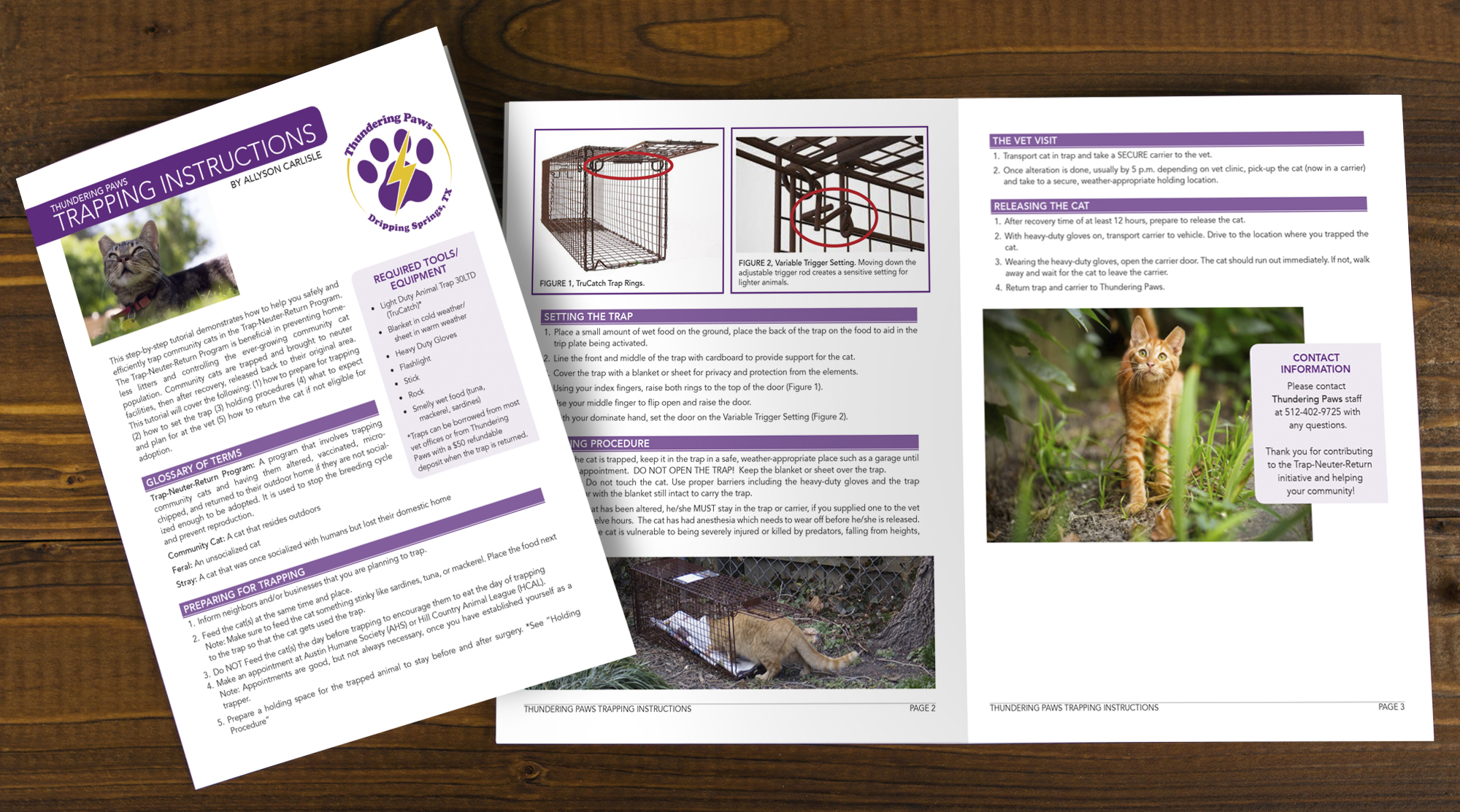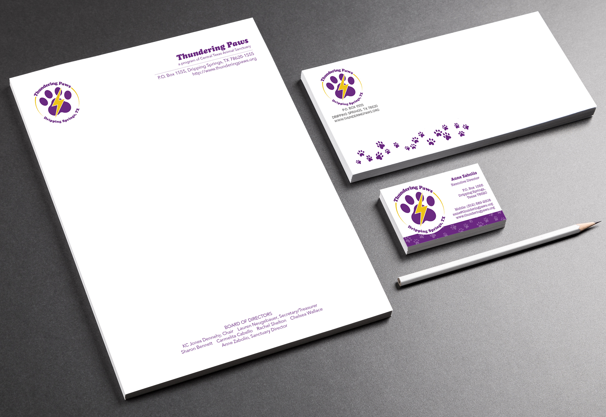 Thundering Paws is a 20-year-old nonprofit animal sanctuary in Dripping Springs. Working with the board of directors and executive director of the facility, we have updated and created many of their items: